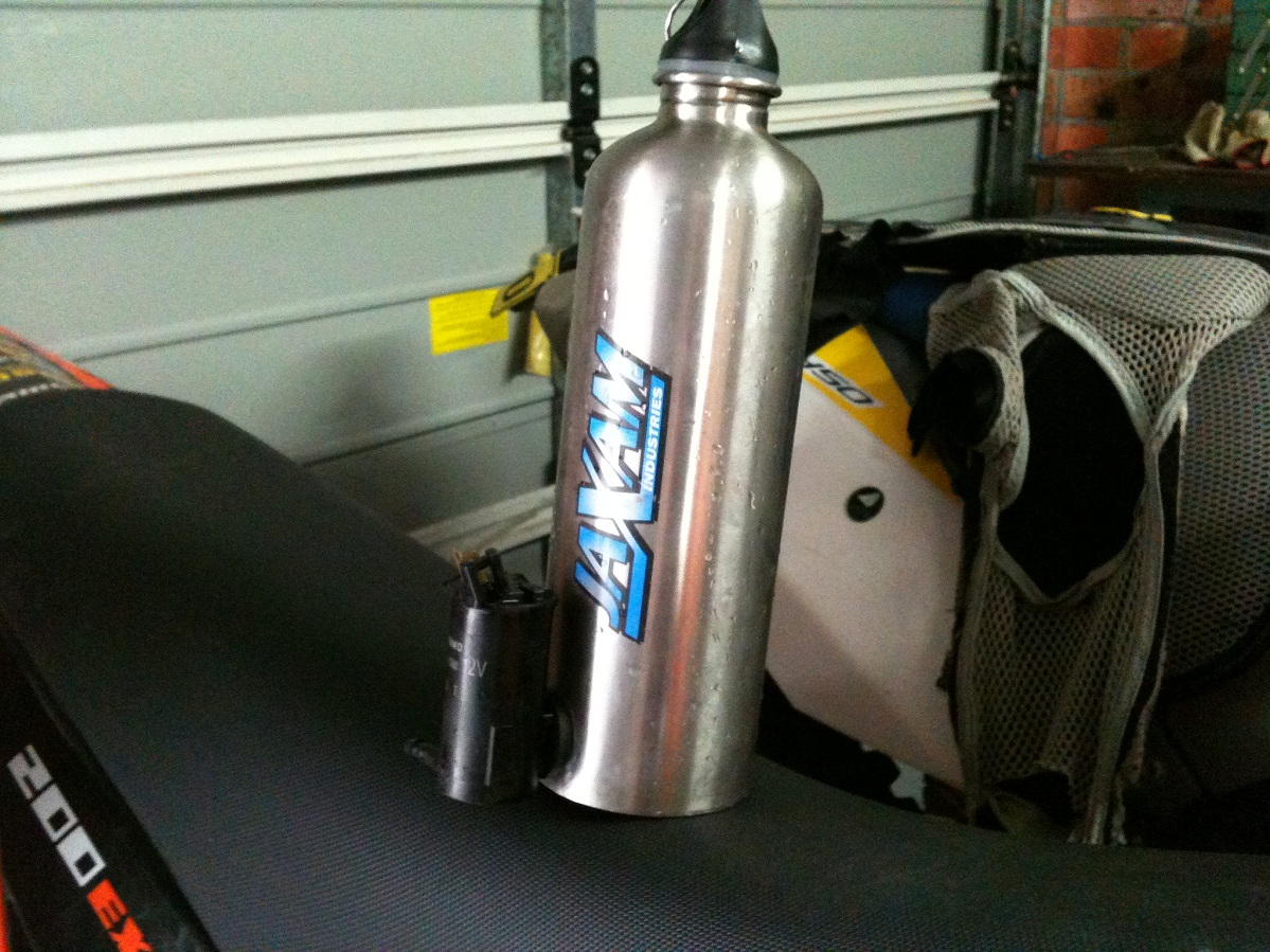washer bottle, simply an aluminum water bottle with a hole in drilled in it, and stock pump used.