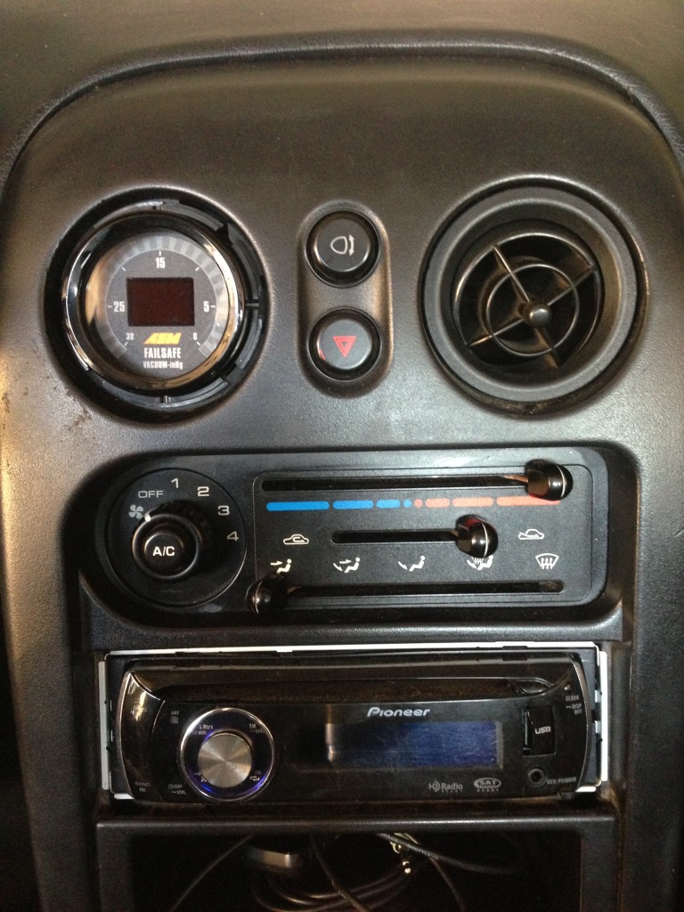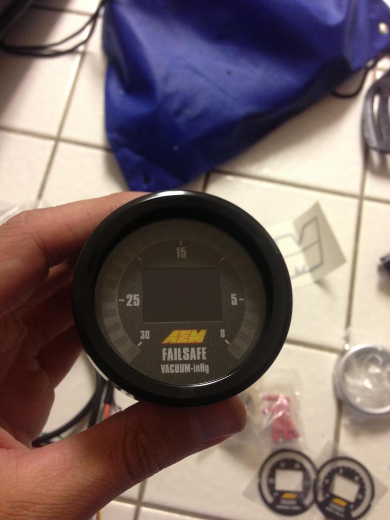 Got my AEM sideband wired up and installed tonight. It looks great and fitment was spot on and no electrical tape was necessary to achieve that "tight fit" some people have needed when mounting the gauge in the vent. I hooked it up to the laptop and set the gauge to display vacuum for now since I am N/A. Having a friend weld up the bung for UEGO here soon.