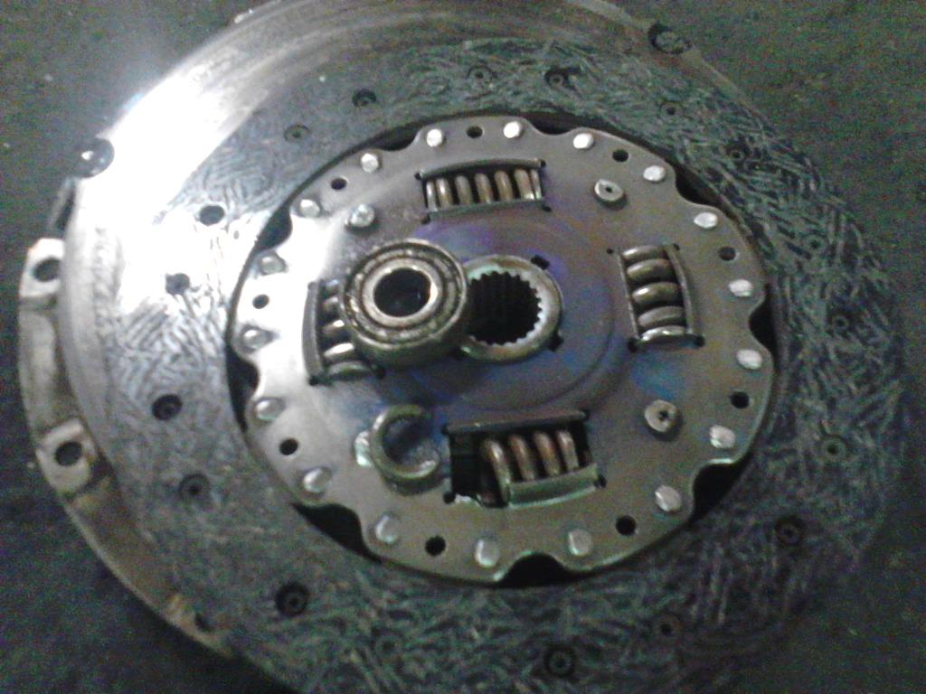 old clutch disc, bearings, i drove around on broken springs until the clutch kit came in. i got stuck a couple times and had to no lift shift home from work the day i was supposed to replace it.