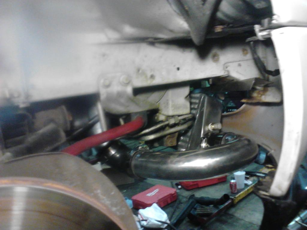 since i still have A/C and P/S, i couldn't route it the way i saw begi and a couple other builds on here... so we cut and torched some metal out of the way!