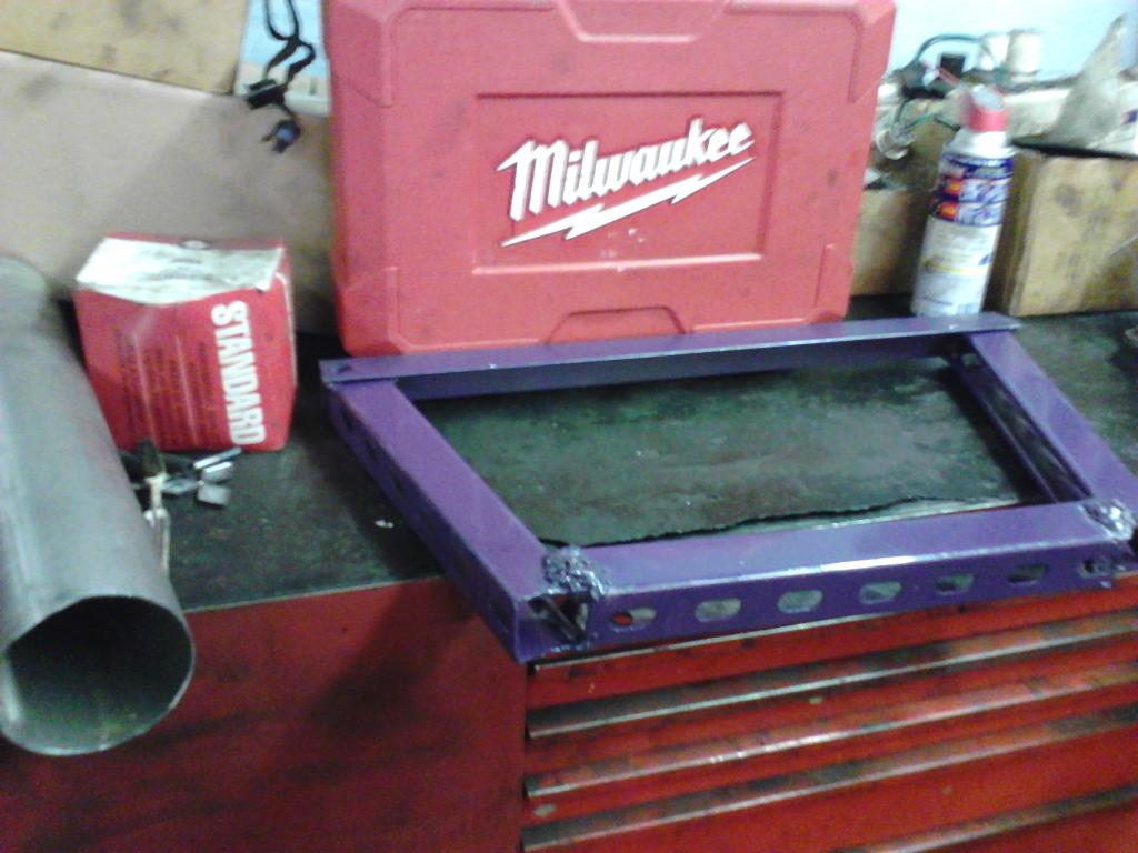 but it turned out like crap and too heavy, so i went to home depot, picked up the same metal i used to make the rear brace, and welded them together. soooo much lighter and cleaner than the first one i made!