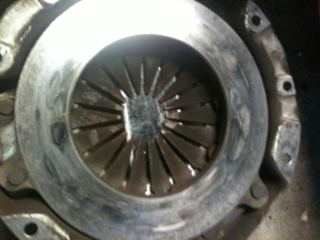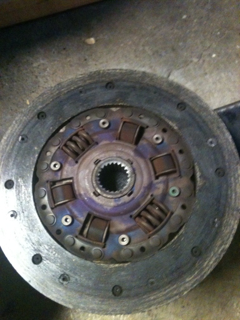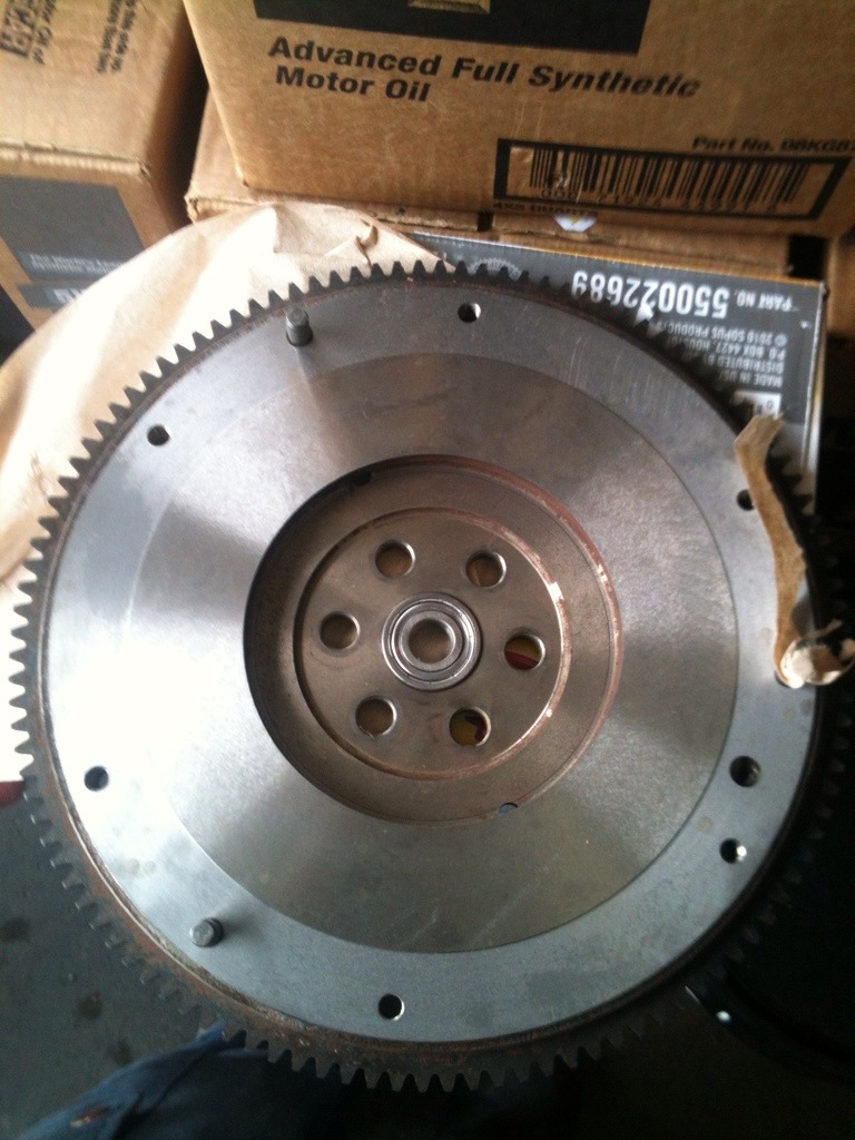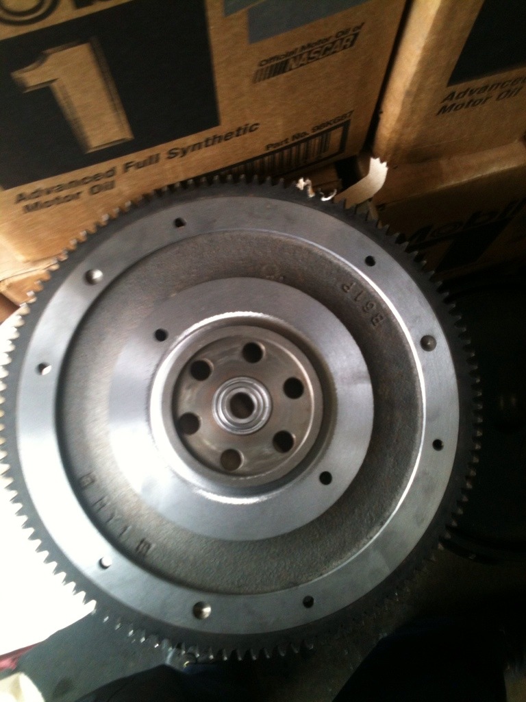 Couldn't get a decent picture of the flywheel with the lightning in my garage and my iPhone. Everything was blue'd to ---- though. Going to hopefully get my flywheel resurfaced tomorrow and toss a new clutch and pressure plate in.
