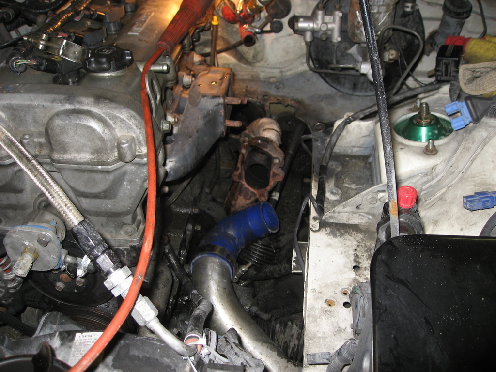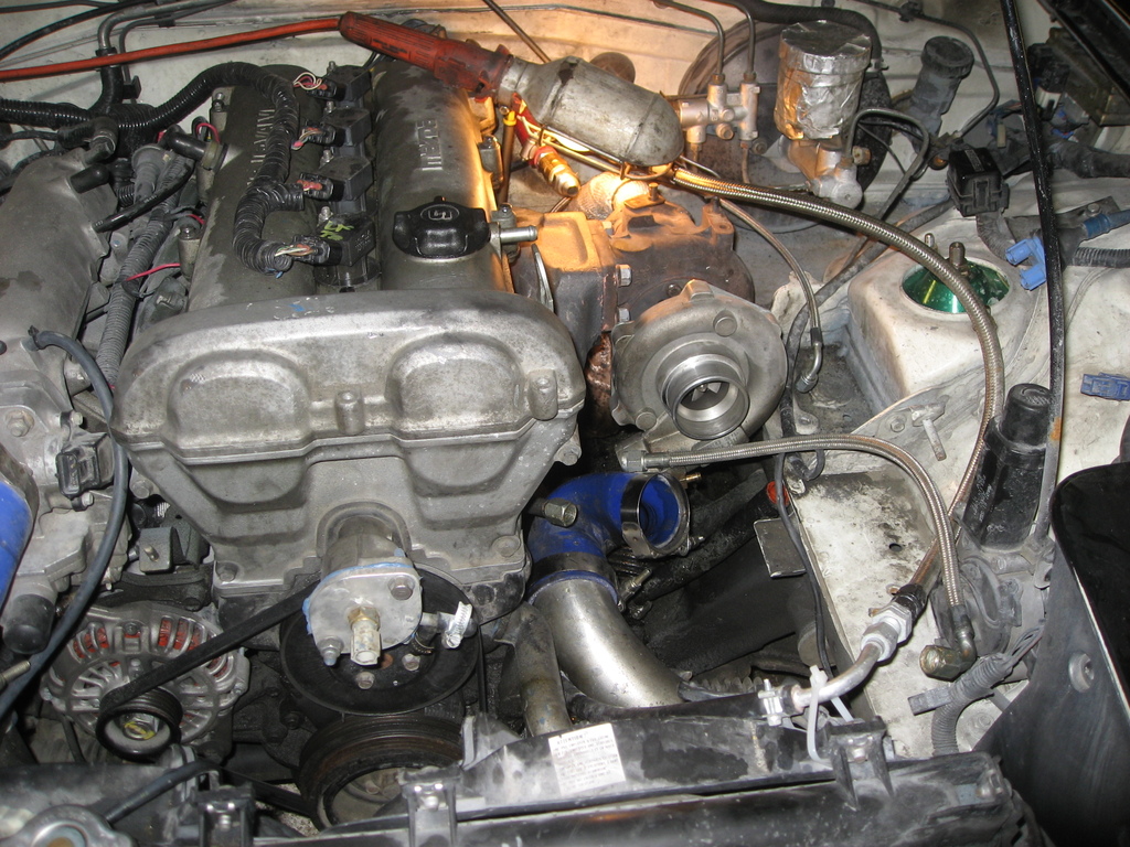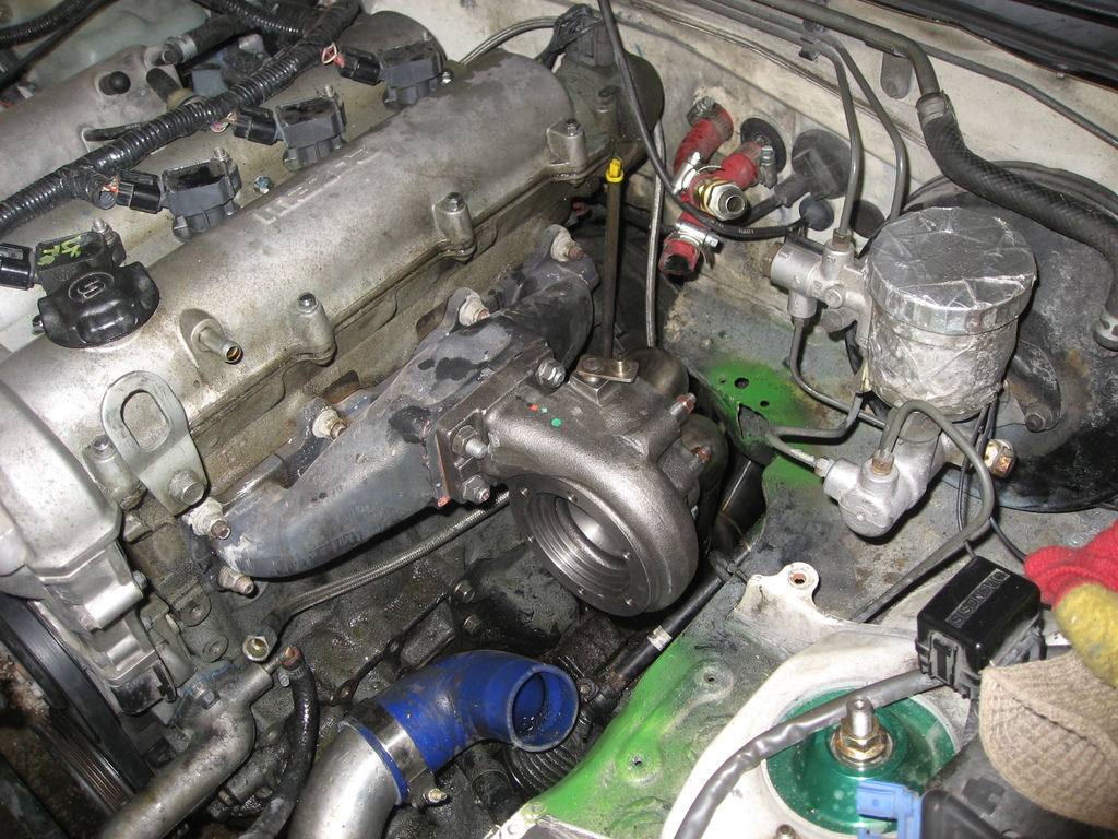 More test mounting. Oil and coolant is more visible here, the CHeap CHinese CHurbo (CH..ch...churbo) leaked everything everywhere because of poorly machined threads, and I just didn't give a crap for the last week or so as I was replacing the turbo anyways.