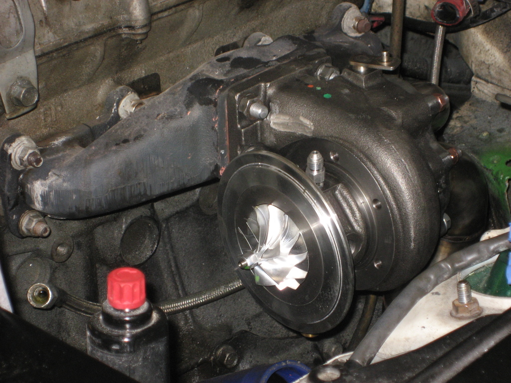 CHRA test-fitting, and it's beautiful, beautiful billet wheel.