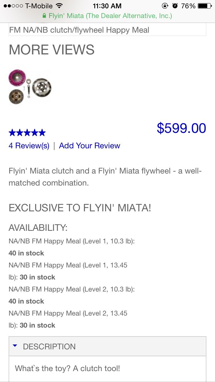 Ah, gotcha. I didn't know if they did that or not. Their website shows that they have Happy Meals in stock so maybe I can get them to sell me just the clutch kit without the flywheel.
