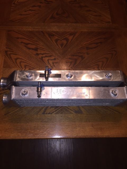 I like the Mishimoto one because it is brand new, doesn't have any bent fins, and is heavier. I like the JDM Sport one because the core looks a lot more dense... I'm at a loss.