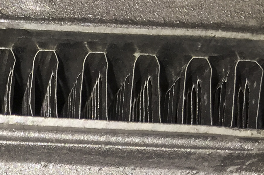 I picked up an eBay (EMUSA) delta fin (thought Brainy got the same design) at that time for improved exchanger flow (I run AC). The core/tube ends look like typicalsteve's eBay/JDMsport on the end, but just past the entry you can see the fins have vertical, angled slits that dip into the air flow. I wonder if the JDMSport is not the same- you just can't see it in the photo.