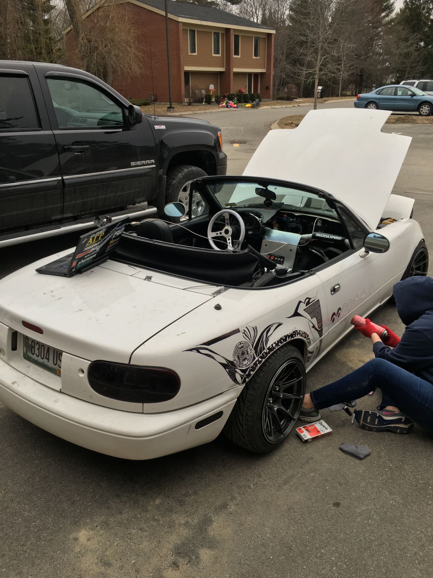 Those first few are the day after I got the car, lowered it too much etc, it's now at 12.5 height with kirkey seats and no interior, probably how it will stay. girlfriend enjoys doodling so that gives her something to do while I work on the car.