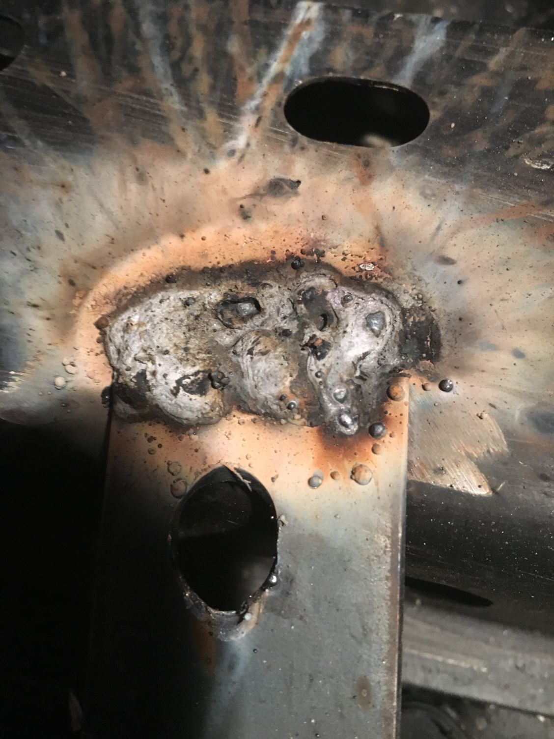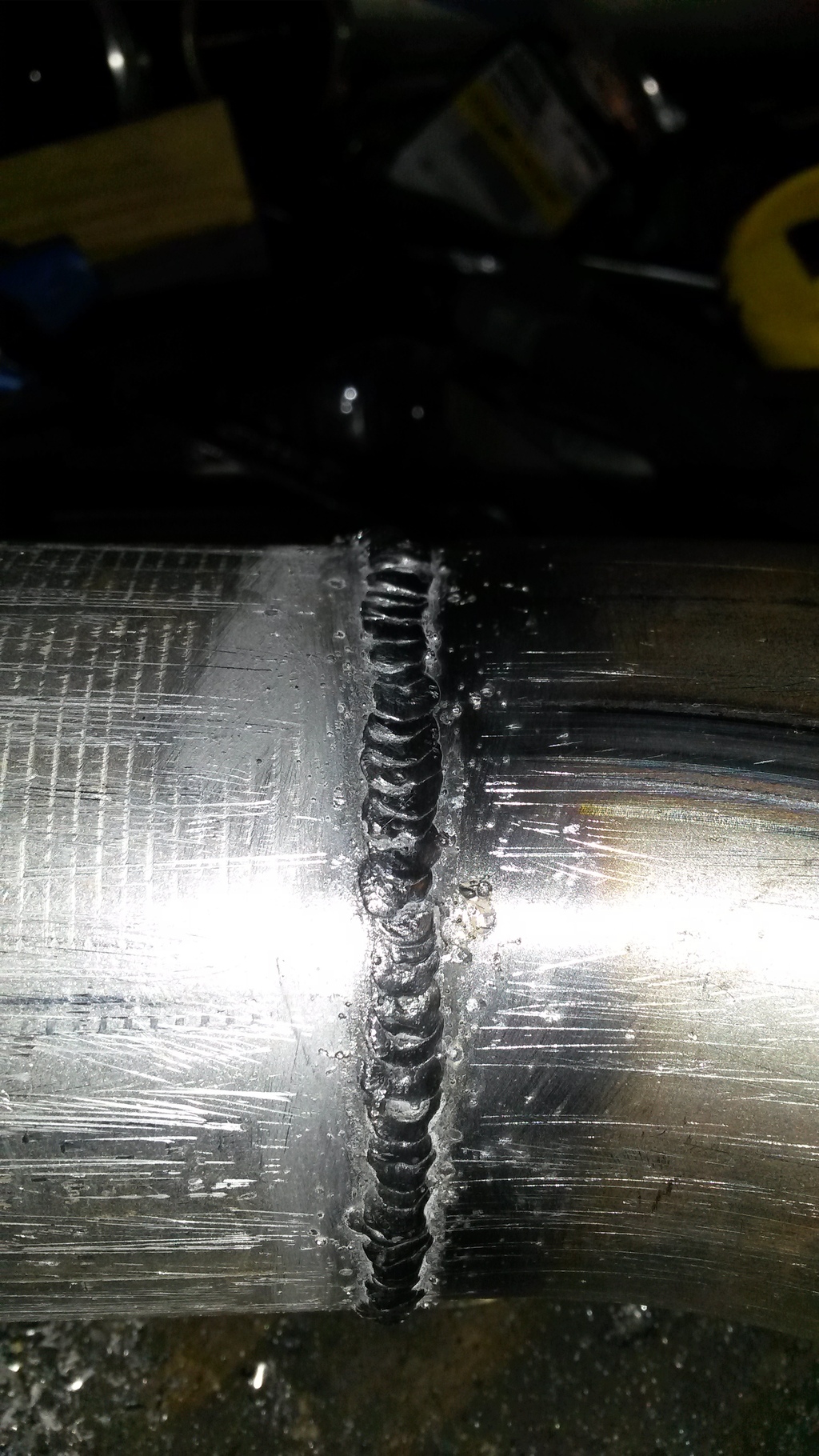 I've gotten some pretty good welds with the hf welder. I can assure you that in this case the metal was clean. It wasn't able to get enough power from the extension cord and power strip it was plugged into. That, and the tip was filthy so it would slow the feed unexpectedly.