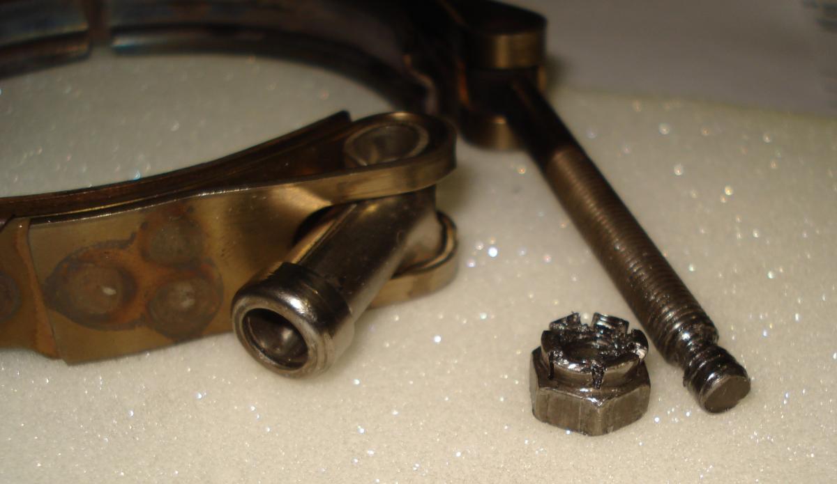 Speaking of failure analysis any experienced turbo guys want to tell me what happened to this 30$ EFR V-band clamp? i made the assumption that i could tighten and remove this nut like i would any other but evidently i was wrong..