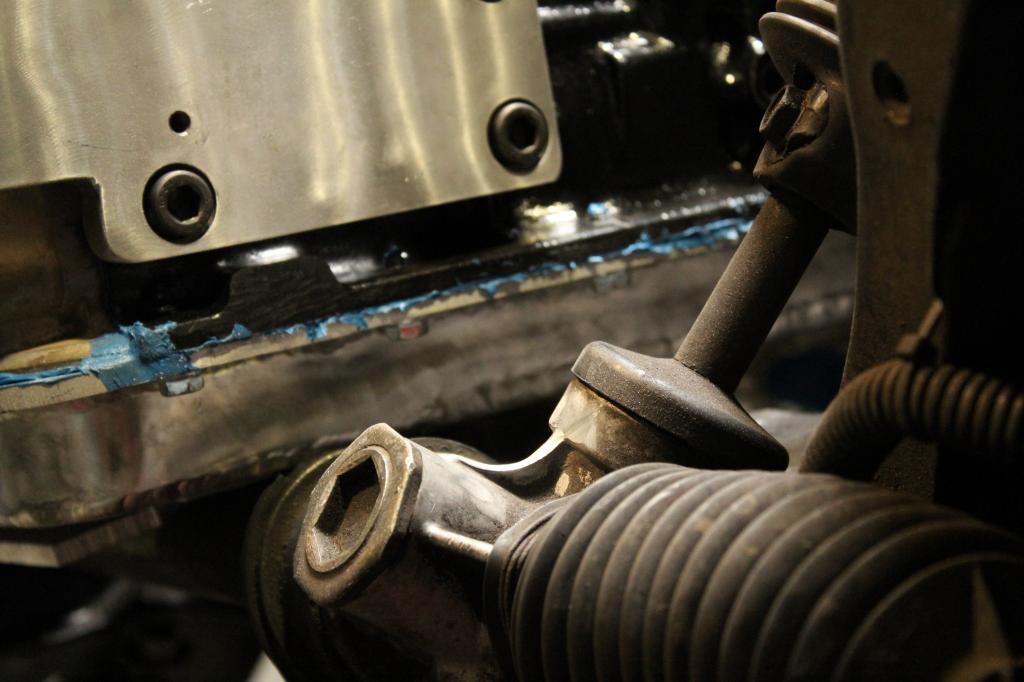I notched the aluminum collar on the rack first time around but this time I pulled the motor back out, pan off and made a concession in the pan to clear that collar. I was kicking myself as I completely forgot about when I fab'd the pan.