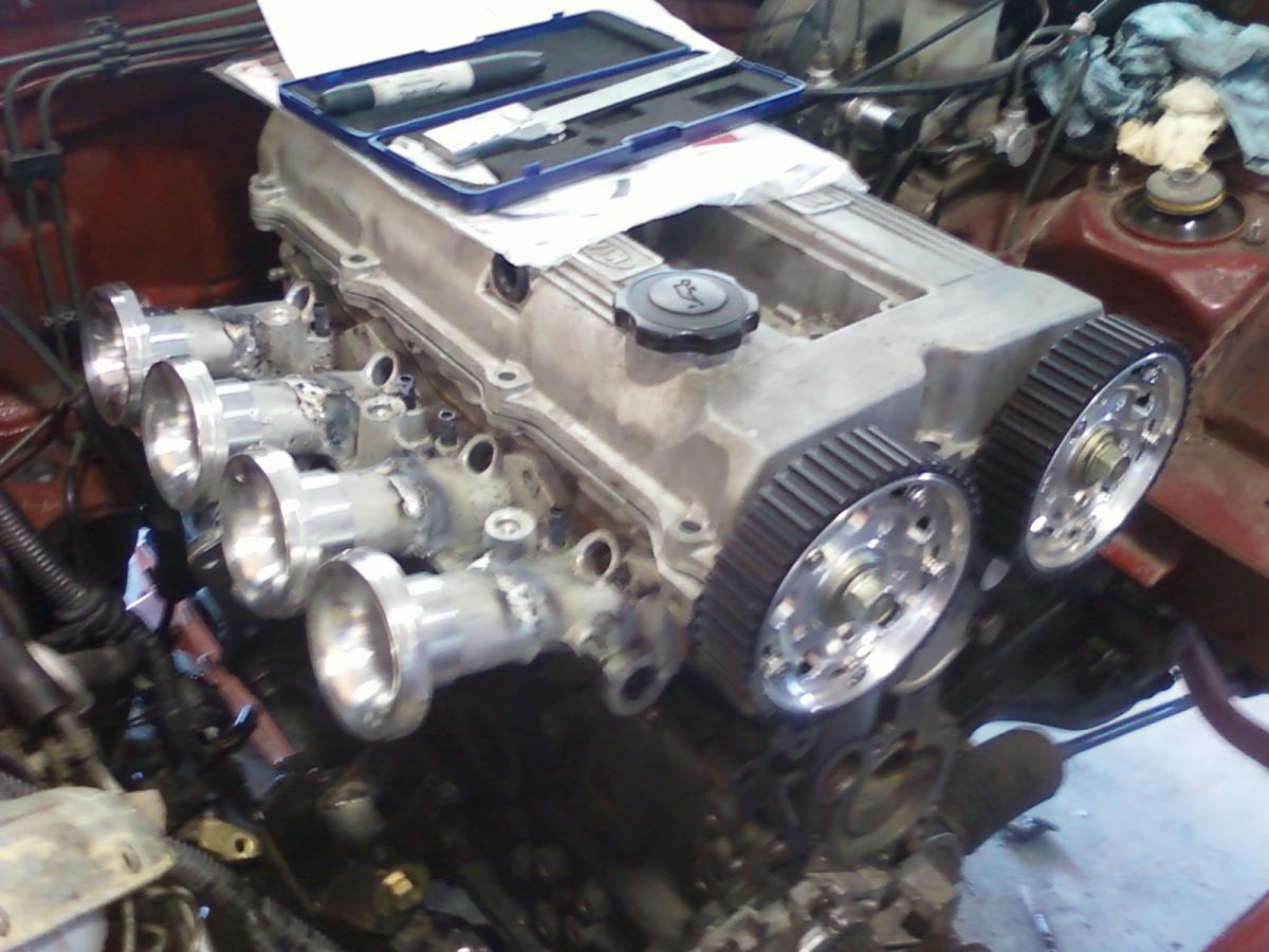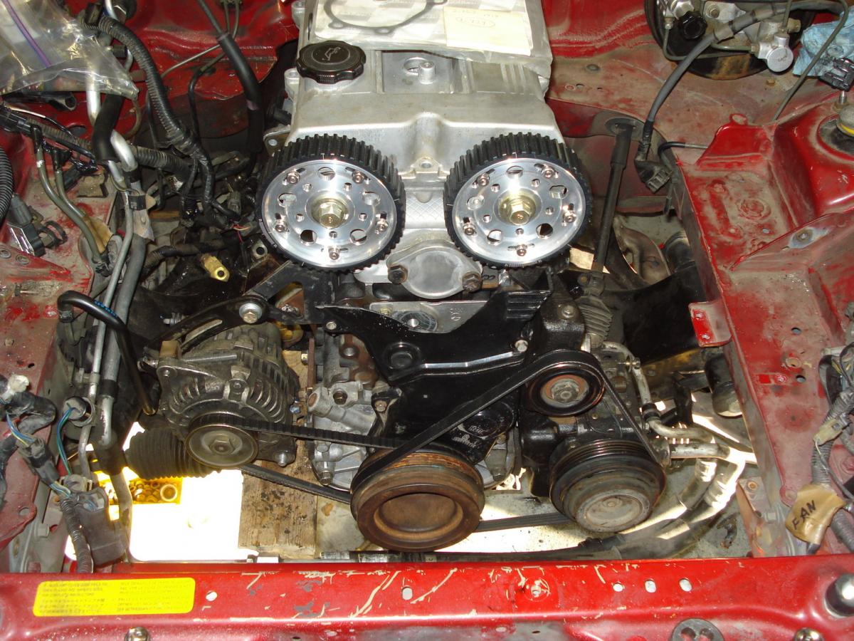 That belt layout looks like mine ('cept for the V groove)- running two belts, alt & AC. I had a similar tensioner, but it's disappeared so I'll probably move over to the tensioner that's on the 1.6 now. How'd you mount the compressor? Inside of the mani looks smooth and that's what matters- that and not leaking/opening up.