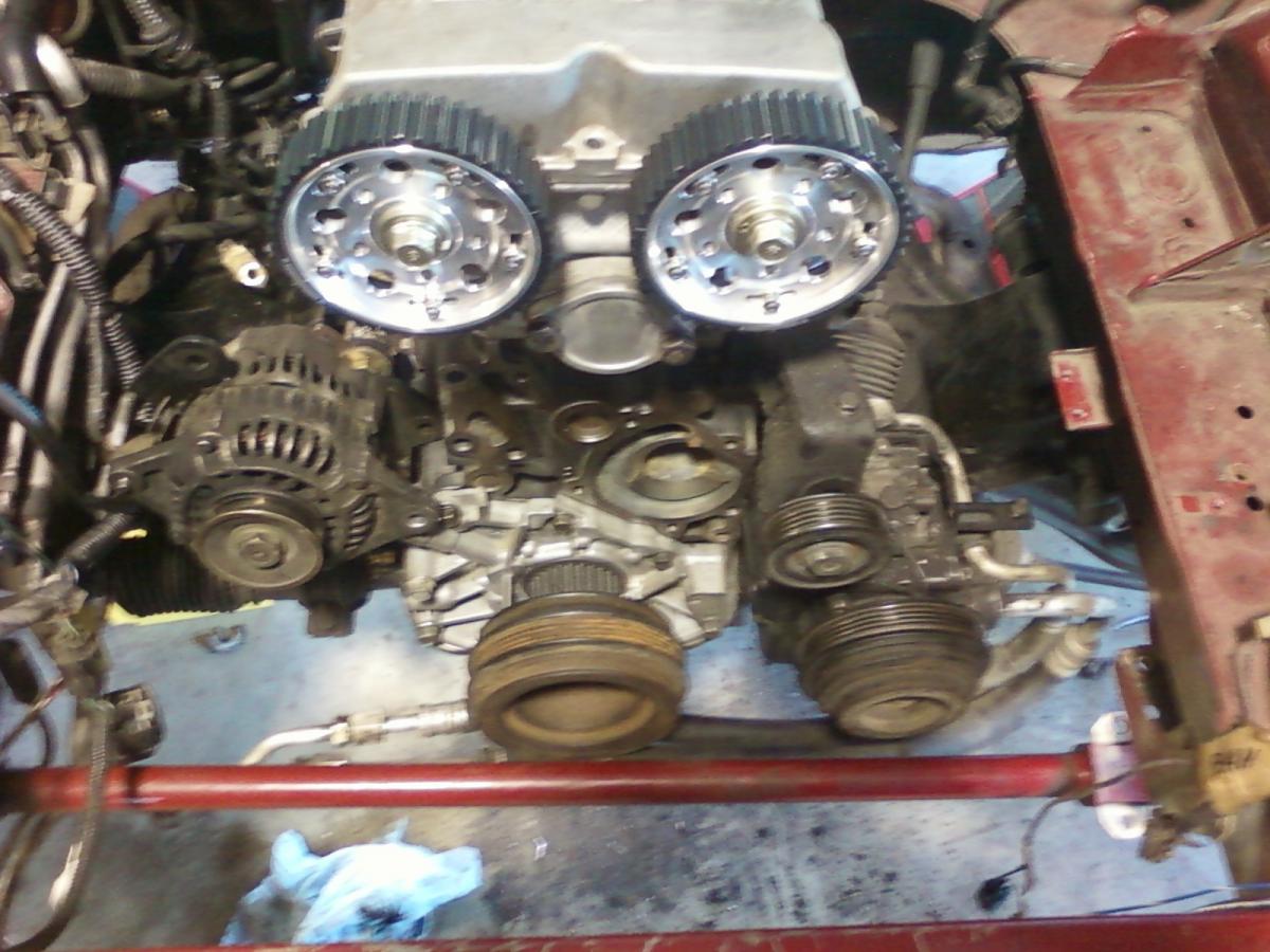 Alternator, AC, and Tensioner mounts modified and belts sized to fit.