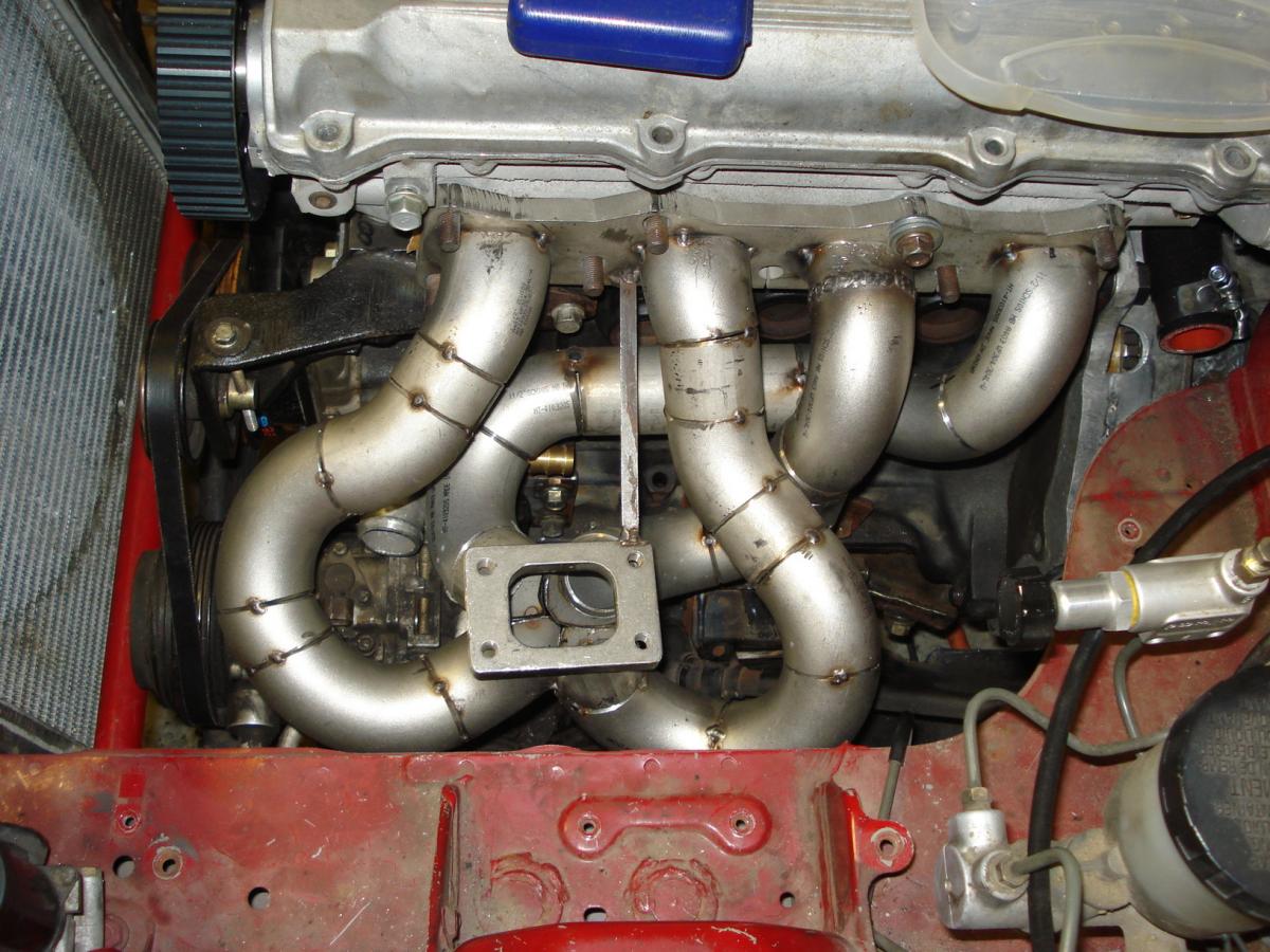 Got the manifold all tacked tonight. Room for a 3" down pipe! One of the pipes leading into the collector has a pretty sharp angle which im not really happy about but its the price i pay for AC..