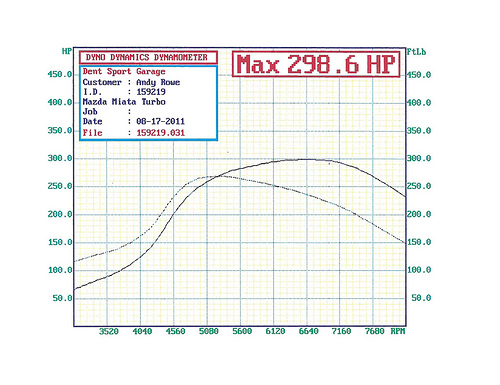 298.6whp 270ft/lbs tq to the rear wheels @18.2 psi. Peak power was right around 7000 RPMs. Rev limit set at 8500 RPMs.