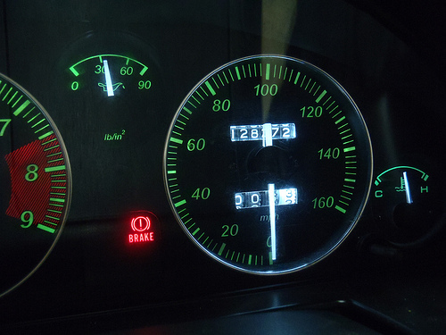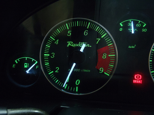 I ended up ordering a set of custom gauges through Revlimiter. They arrived today, and I installed them right away. I wanted a custom set of gauges that would go up to 9 grand, yet to the average joe, appear completely factory. We bounced ideas back and forth, and the final result ended up like this: