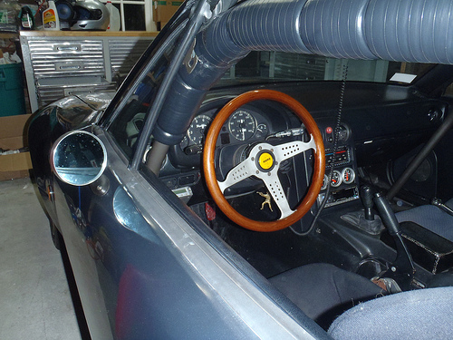Here's a shot of the mirrors, and also one of a sweet wooden MOMO wheel I recently picked up (reused my old horn button)