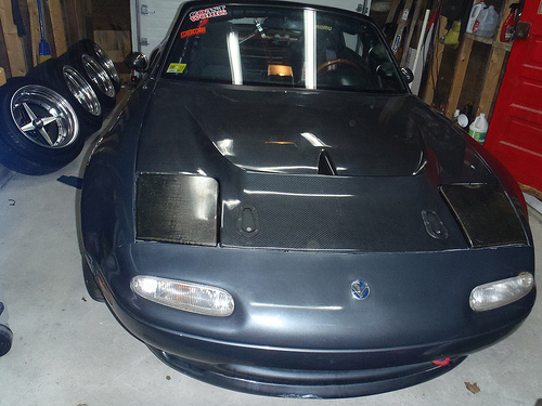 I also got a set of NB Zoom carbon fiber side mirrors. The mounting plates are different (bolt spacing is the same), but there is more than enough adjustment in the mirrors for them to work. So for anyone out there wondering, yes you can mount NB Zoom Engineering carbon fiber side mirrors on your NA and have them be functional.