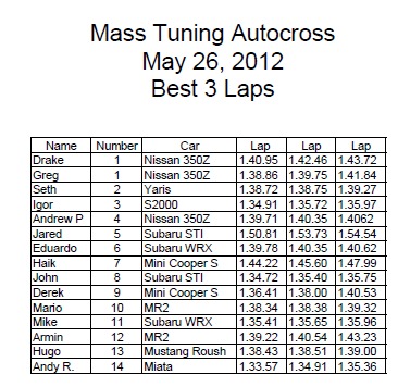 So last Sat I drove down to RI and did the ADSI auto-x event held at the airport at Quonset Point. I even managed to get FTD (the instructors were all faster than me, but their times aren't listed)!