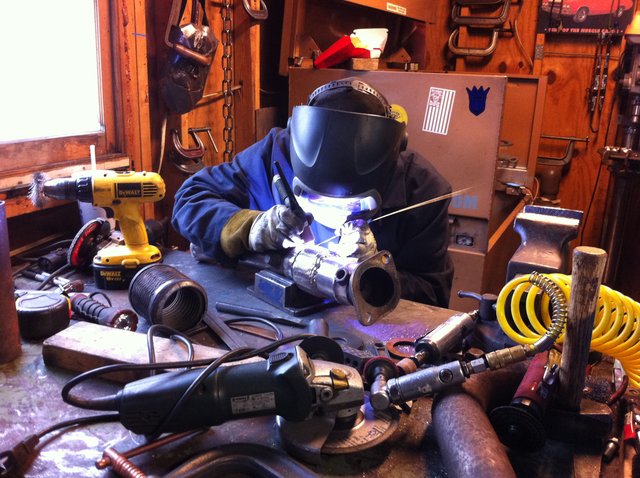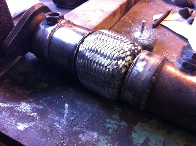 My BEGi downpipe was leaking beyond the point of me dealing with it. The flexpipe was blown out so I picked up a replacement piece from Vibrant. The job was a bit tedious with the position of everything and I was not 100% confident that I could pull it off in one go. Luckily I have a friend who is likely one of the best welders I'll ever meet.