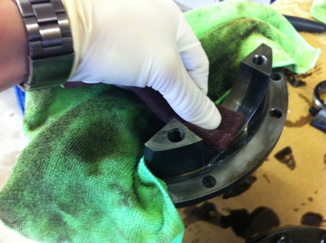 The bearing caps didn't look very clean so I got them back in shape with some light scuffing.