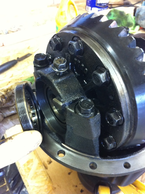 Dropped the caps on and installed the bearing adjusting rings. These are used when setting up the diff. They basically allow adjustment of preload and the position of the ring gear against the pinion for setting the proper backlash clearances.