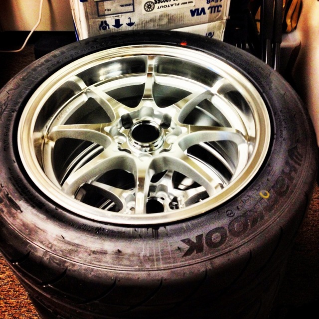 My wheels and tires showed up. These are the Konig Flat outs and the 225/45/15 Hankook RS-3's