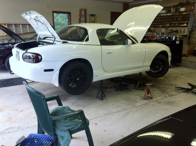 I tossed the car up as high as I could achieve on jack stands to make the removal easy.