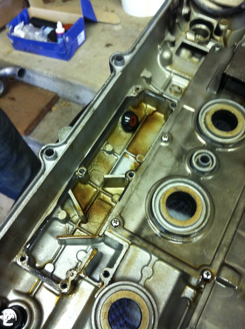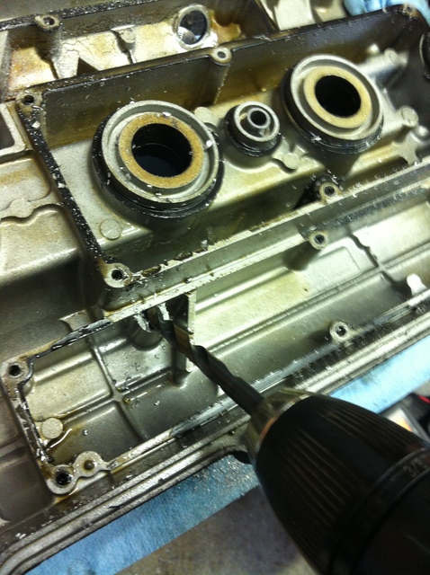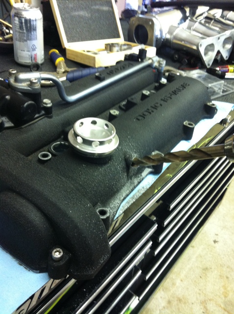 At a stand still on the engine removal, I pulled the valve cover and started to prep it for the -8AN lines I'll be using on my new breather setup. I flipped it and removed the baffles.