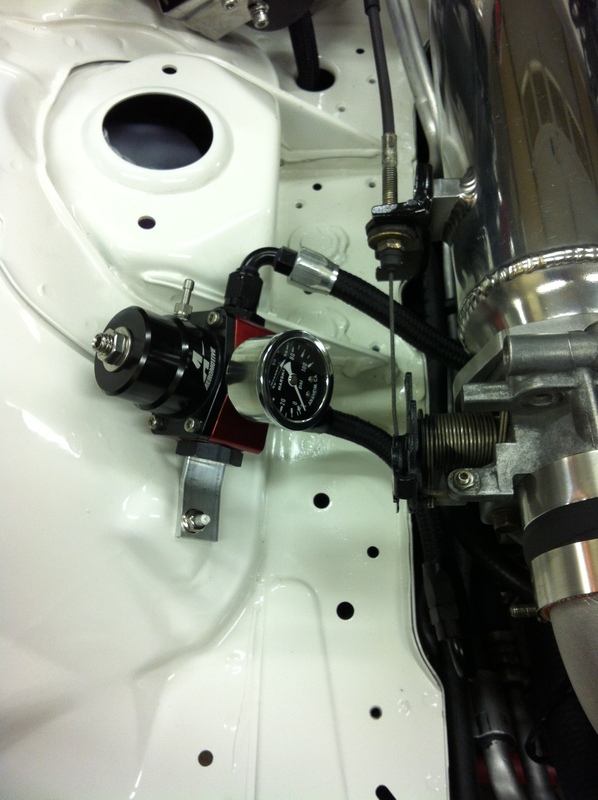 Then installed my Aeromotive regulator. I ended up using an existing hole in the bay with my own bracket. Locking hardware and loctite was used here as well.