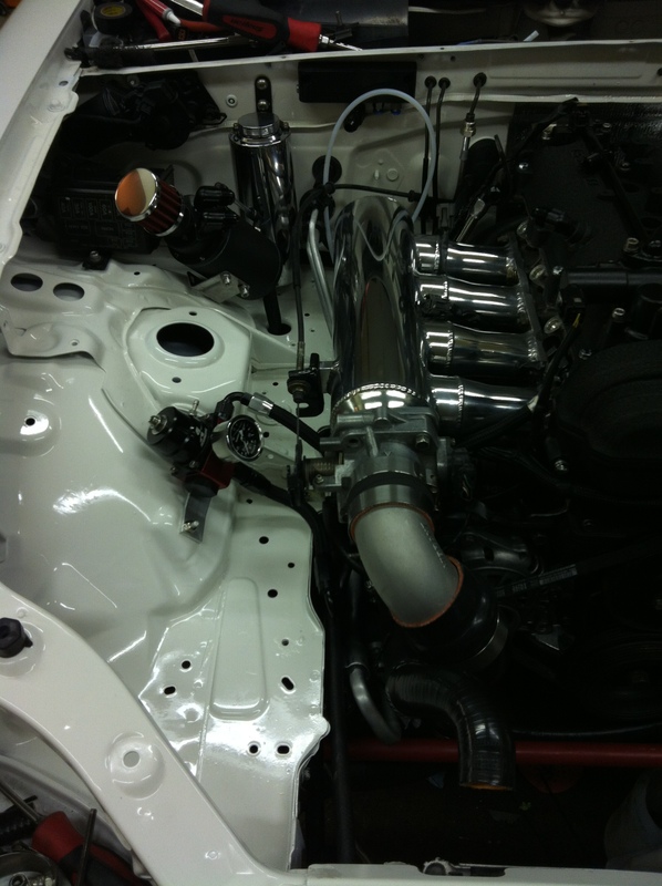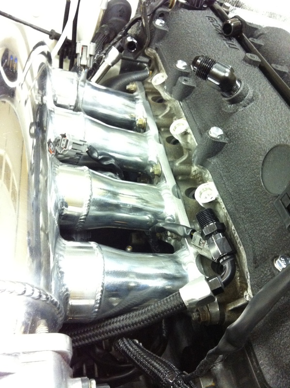 I extended a bunch of my wiring to route it all under the intake manifold, even the injector leads. After that was complete I mocked up the intake manifold to check for obstructions.