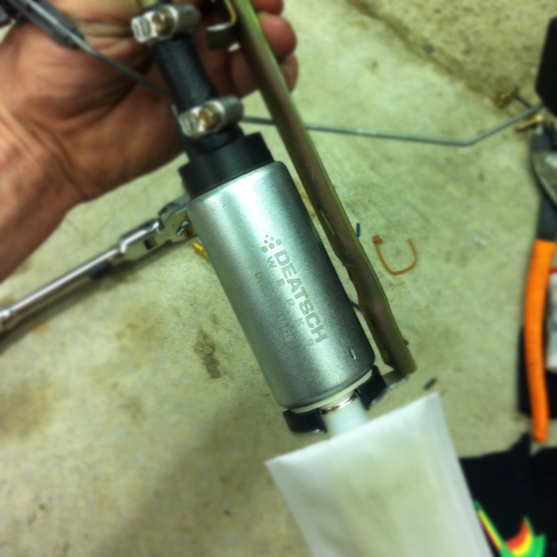 Next task was to install my Deatsch Werks pump. The DW pump is quieter than my old one, still in-tank and will flow the power I need. Since my car is a returnless setup I chopped off the regulator and redirected the return flow onto the pump for cooling reasons.