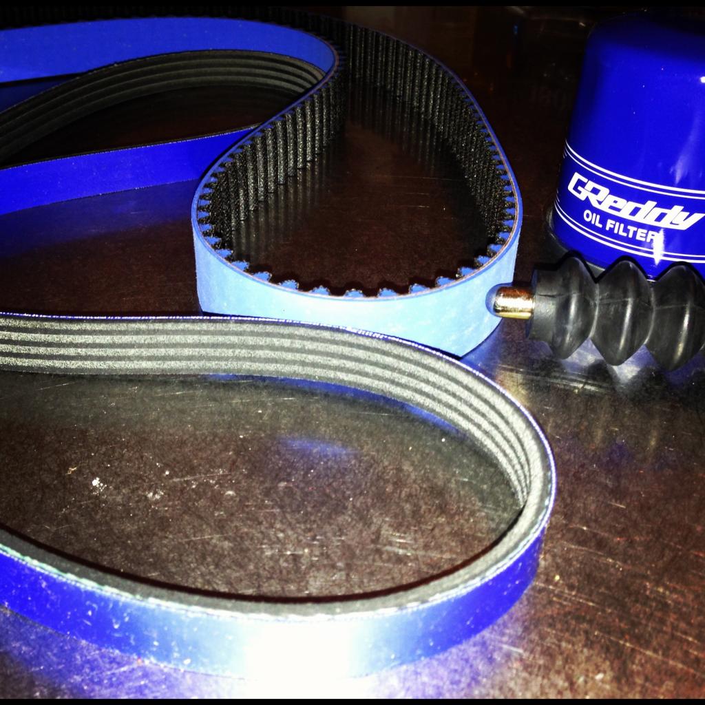 Just for a change of pace I decided to set the electrical stuff aside and work on some mechanical items. The timing belt needed to be changed. The last time I pulled the valve cover off it didn’t seal properly and got oil on my belt. So I figured I’d replace it with the Gates Racing belt. They are known to hold up quite a bit better under harsh condistion.