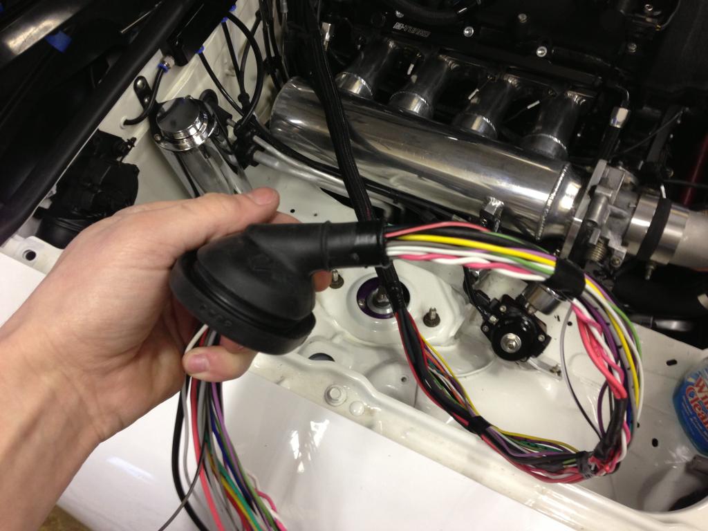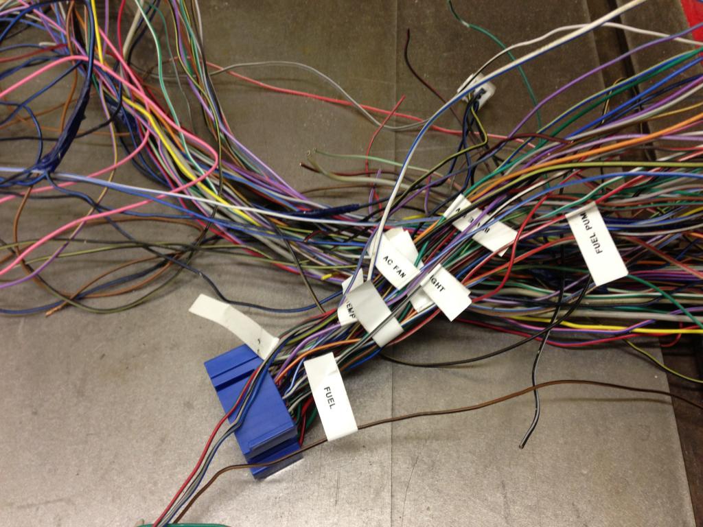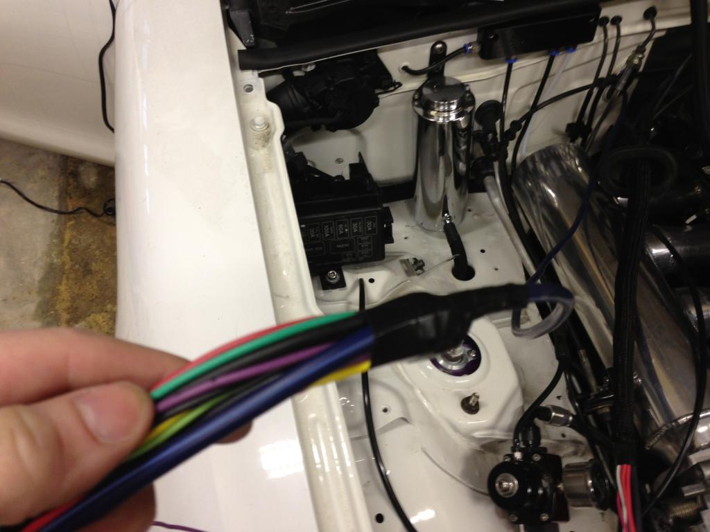 It was now time to bundle some wires and get them through the firewall. I grouped everything and was preparing to send it through the factory boot.