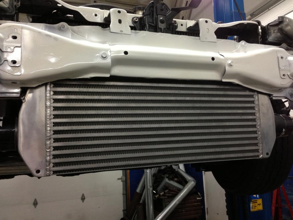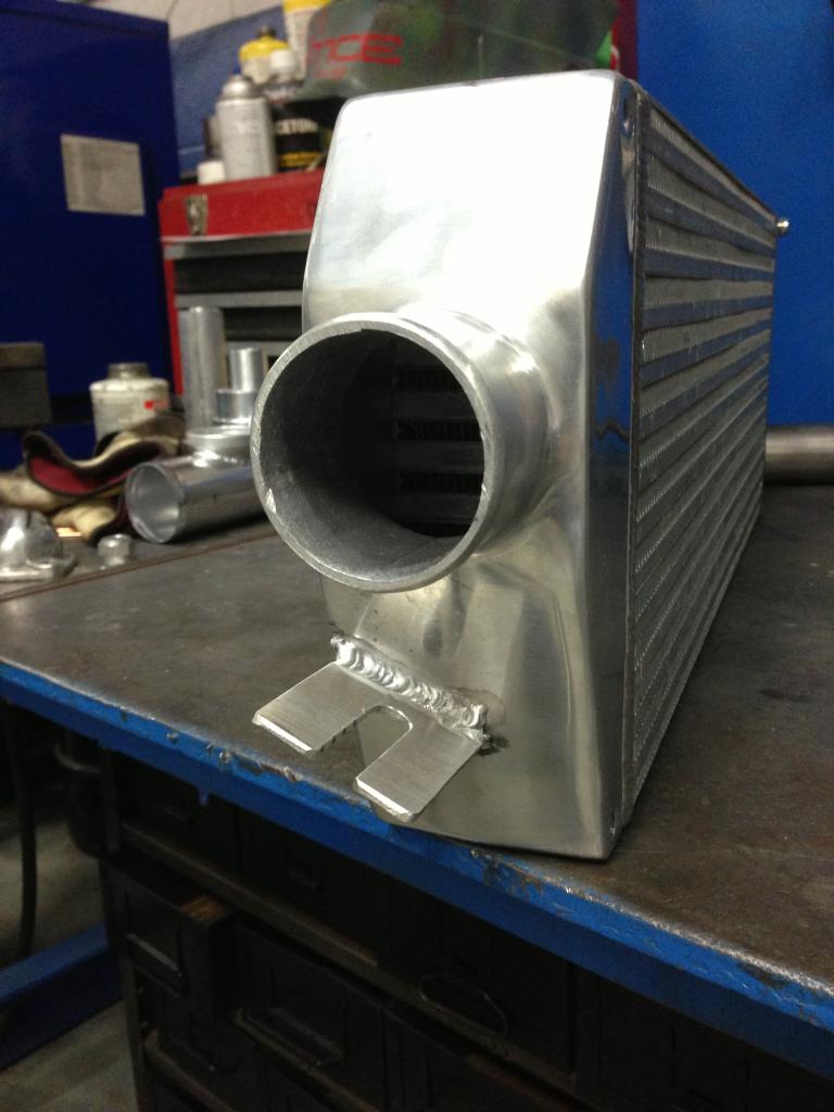 Updates on the intercooler front: Got the intercooler mocked up and the tabs welded on. The area where the core support needed to be modified is complete.