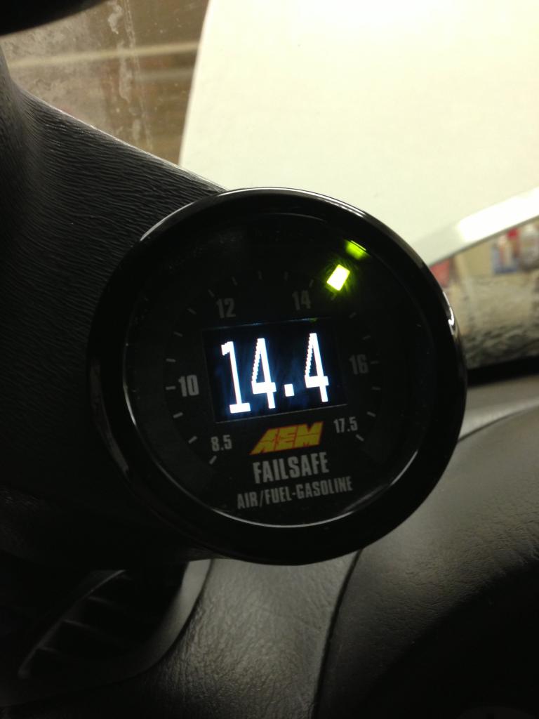 In effort to consolidate my gauge situation I picked up the AEM Wideband Failsafe setup. This not only will display both my boost and AFR on the same gauge face, it can be setup to activate trigger outputs when my fuel ratios step out of line.