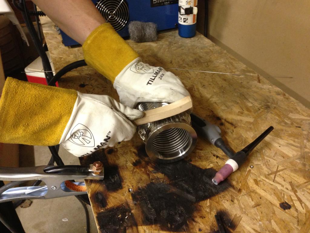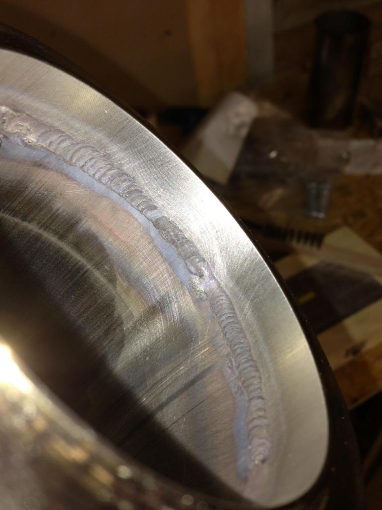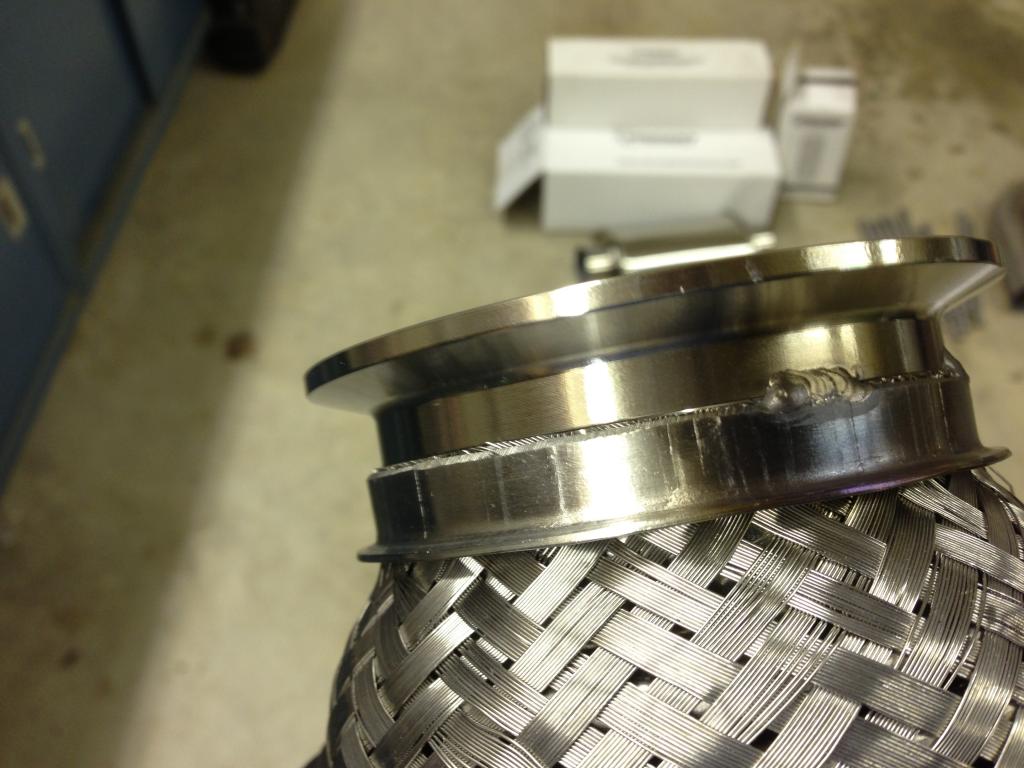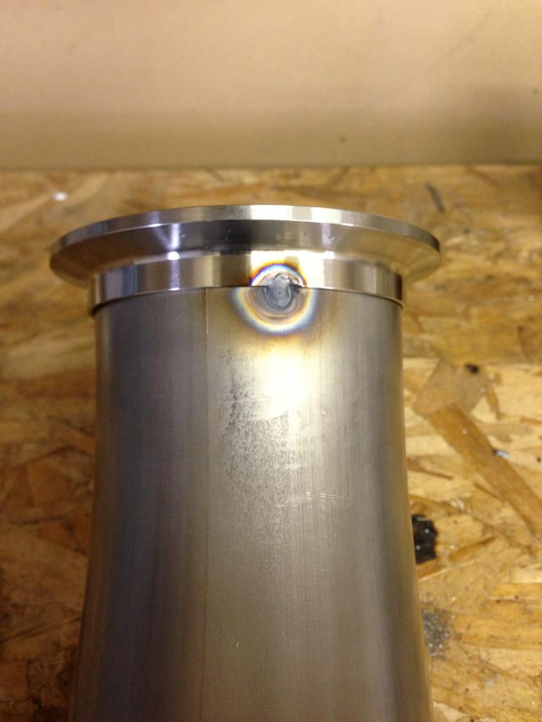 I’m no professional welder by any means but I do know that you must tack v-band flanges in multiple areas before you make your pass or else you’ll end up with a warped flange that wont seat properly.