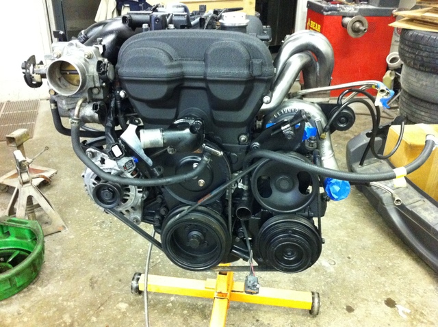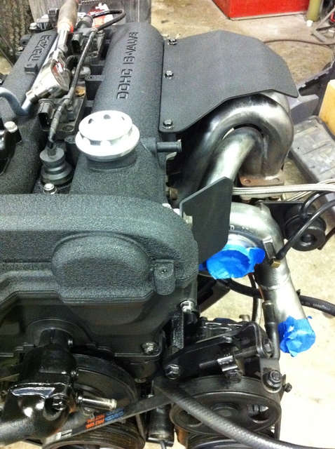 Tonight I went to asses the situation as Dane Cook would say. I mocked up the turbo to make sure my oil return line would work and everything is looking pretty.
