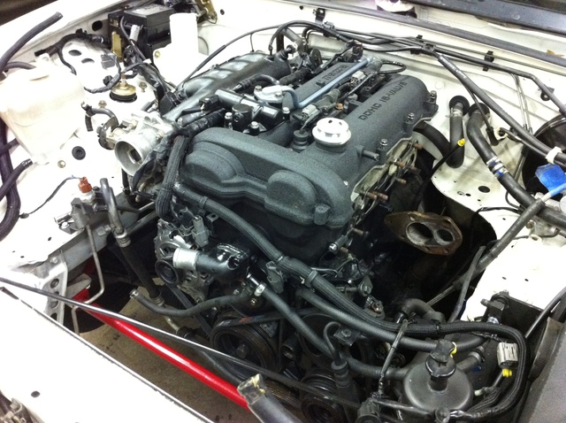 Dropped in the turbo, mounted the DP and snugged it down. Still need to go through and tighten everything up but shes about ready to fire.