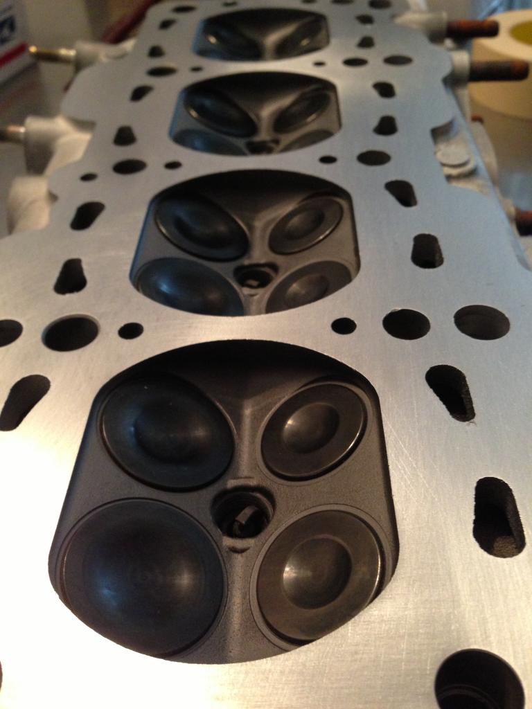 Picked up a new 2003 cylinder head. It was in great shape to start with but I quickly gutted it and had it decked and a valve job done. Then I installed the Supertech goodies – Dual springs, titanium retainers and valves. Now she’s sitting there waiting for the coolant reroute material and to assemble the rest.