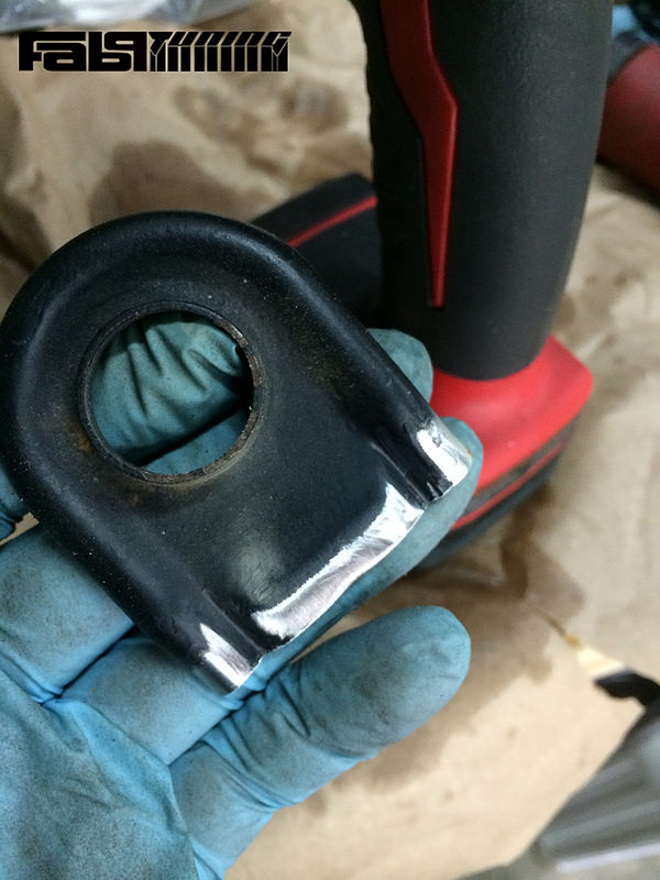 Now for mounting the Koyo to the shroud.. I wanted to leave the Koyo as un-molested as possible to keep things serviceable down the road. So for this I took my factory upper mounts and cut them down to weld them to the shroud. This would allow me to easily slide the radiator in and out of place using the rubber isolators. I chopped them down and cleaned them off for welding.