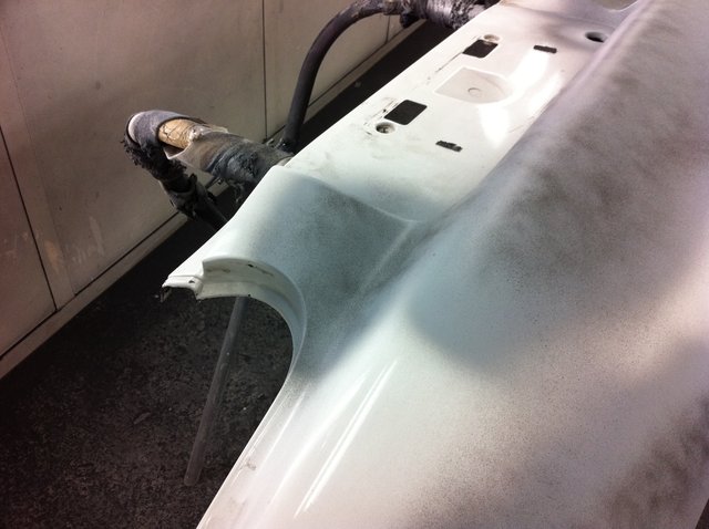 I while the car was in the air I pulled the bumpers and filled the emblem holes. The bumpers could have used a fresh respray anyways. I'll have these on the car tomorrow.