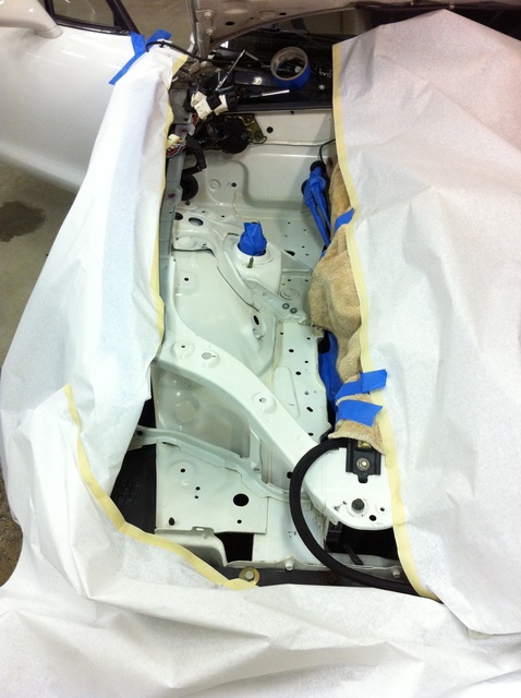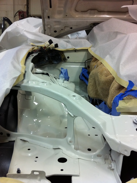 I removed everything to clean some things up. The paint has been pretty stained from the engine exploding in the bay and blowing hot oil all over the white, likely single stage engine bay paint.