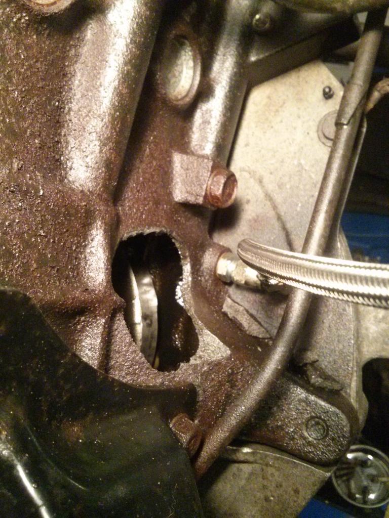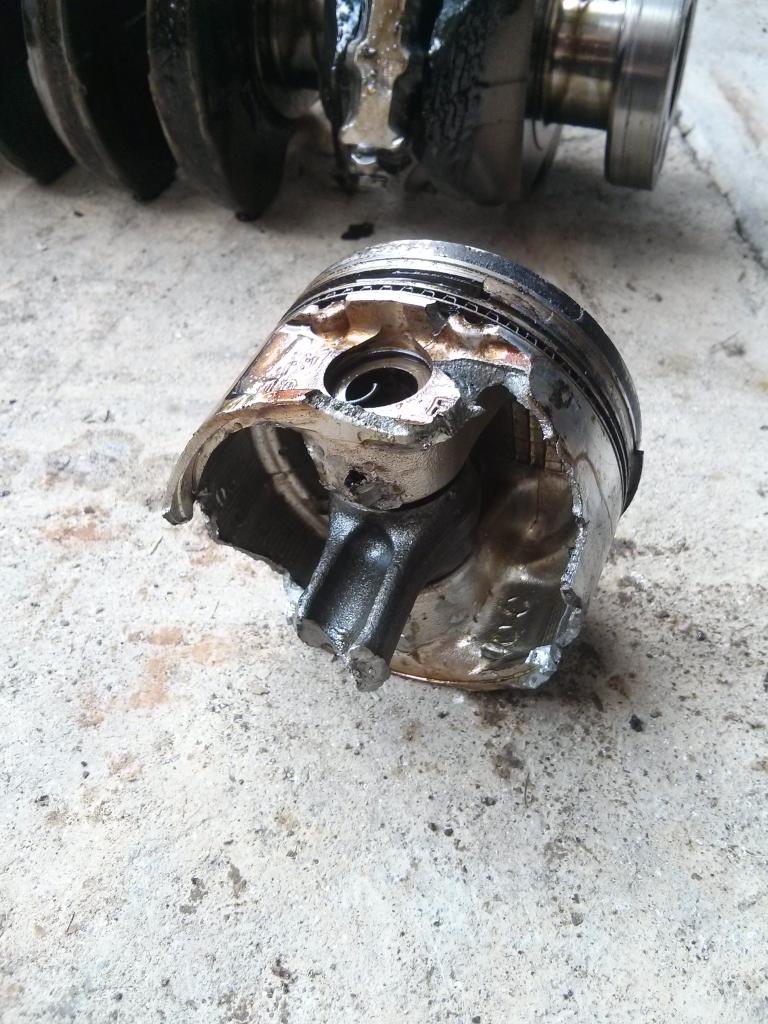 Today I pulled apart the motor. I am still amazed at how much damage was done by this rod. My transmission bellhousing is split too so I'll have to throw one of my spares on there before I sell the 5speed.