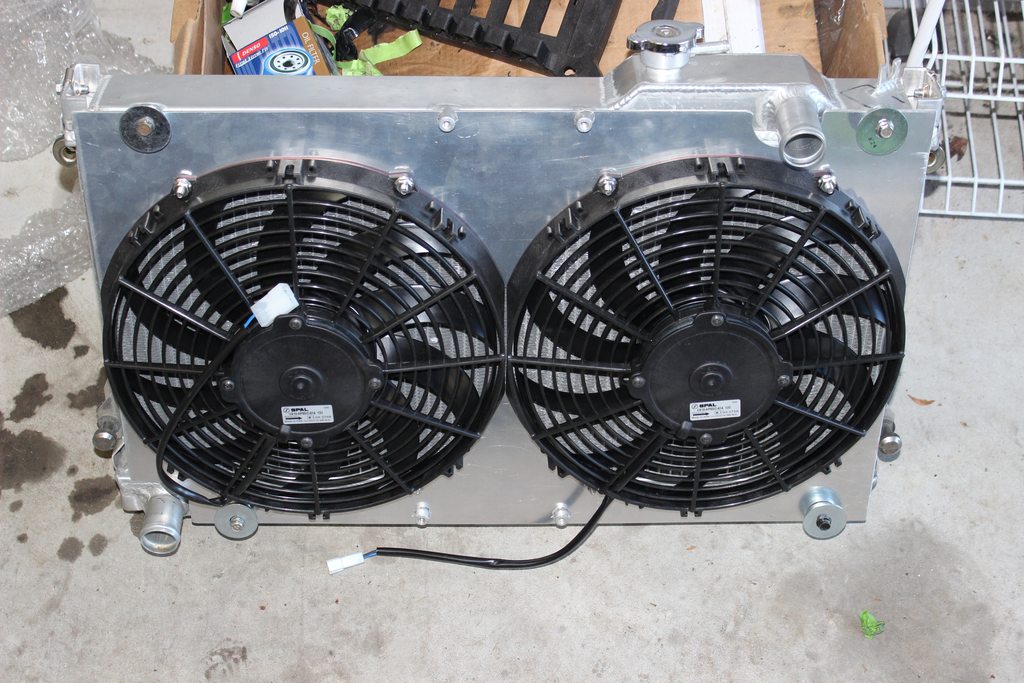 Picked up some fans from Fab9. Two 12" pullers. Hoping to have those mounted to a shroud and on the rad tomorrow.