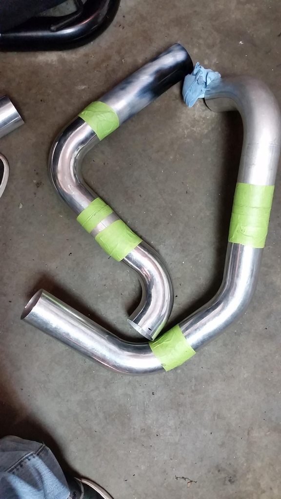 Used all new bends I bought rather than the black piping I had but needed one straight so you can see where i was in the process of cleaning off the black coating on the one straight section in this pic.