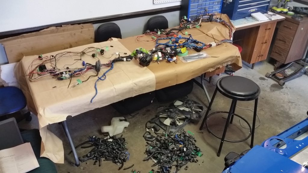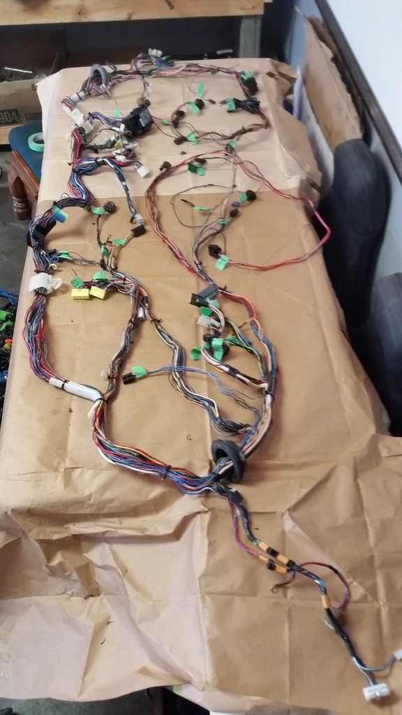 Got the harness all labeled, peeled back the old tape and loom, and took out all the airbag wiring. Tomorrow I'll probably start de-pinning the connectors I'll be using and maybe start running the new wires.