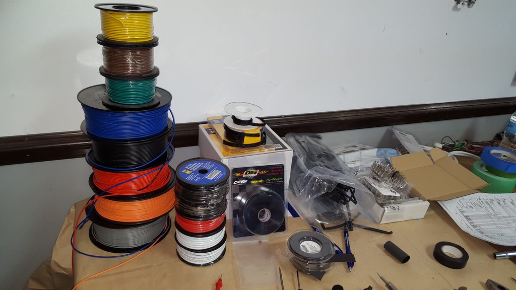 But! I had a friend come over and start on the harness just doing a bit of work a few nights a week. The engine bay side is mostly done but I'm waiting on my bulkhead connector to finish it off. Unfortunately my Passport and almost new Galaxy S5 were stolen last time I was in Detroit picking parts up so I can't make it back across to pick any parts up anytime soon.