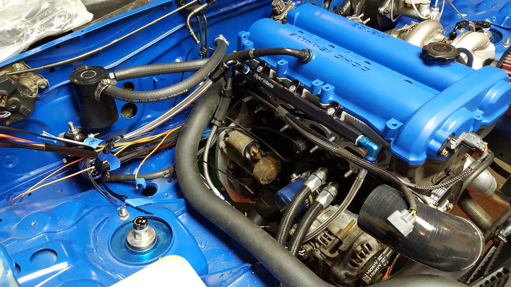 Starter and alternator still need to be wired but I was just waiting on some thicker gauge wire for that so hopefully that'll happen tonight or this weekend. Also need to figure out the coilpack wiring and get that done.