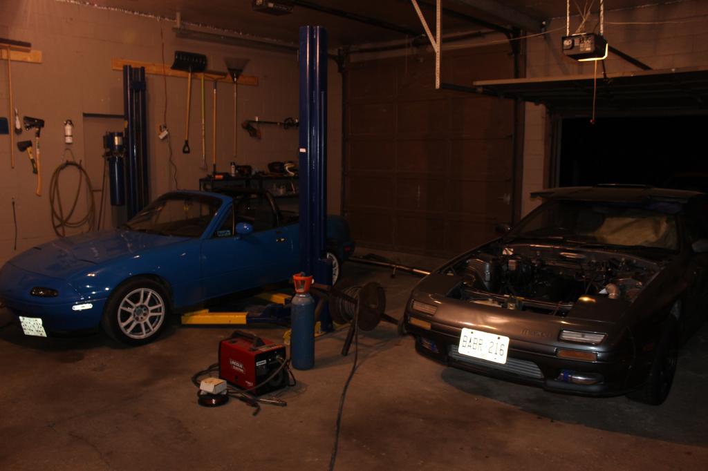 Miata and turbo LS fc project in the garage